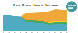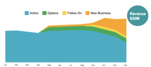 - Visual dashboards like the ones above show how pipeline stages (Active, Options, Follow-Ons, and New Business) support your plan.